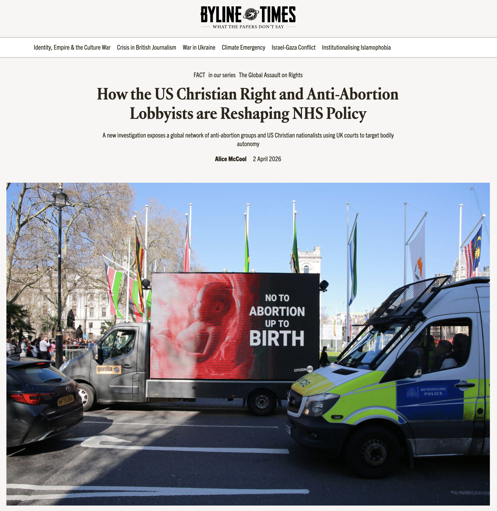 I investigated the links between March for Life UK and US Christian right group Alliance Defending Freedom, and exposed allegations against participating religious leaders.
